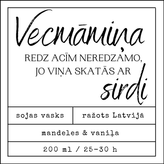 "Mammīte skatās ar sirdi..." sojas vaska svece