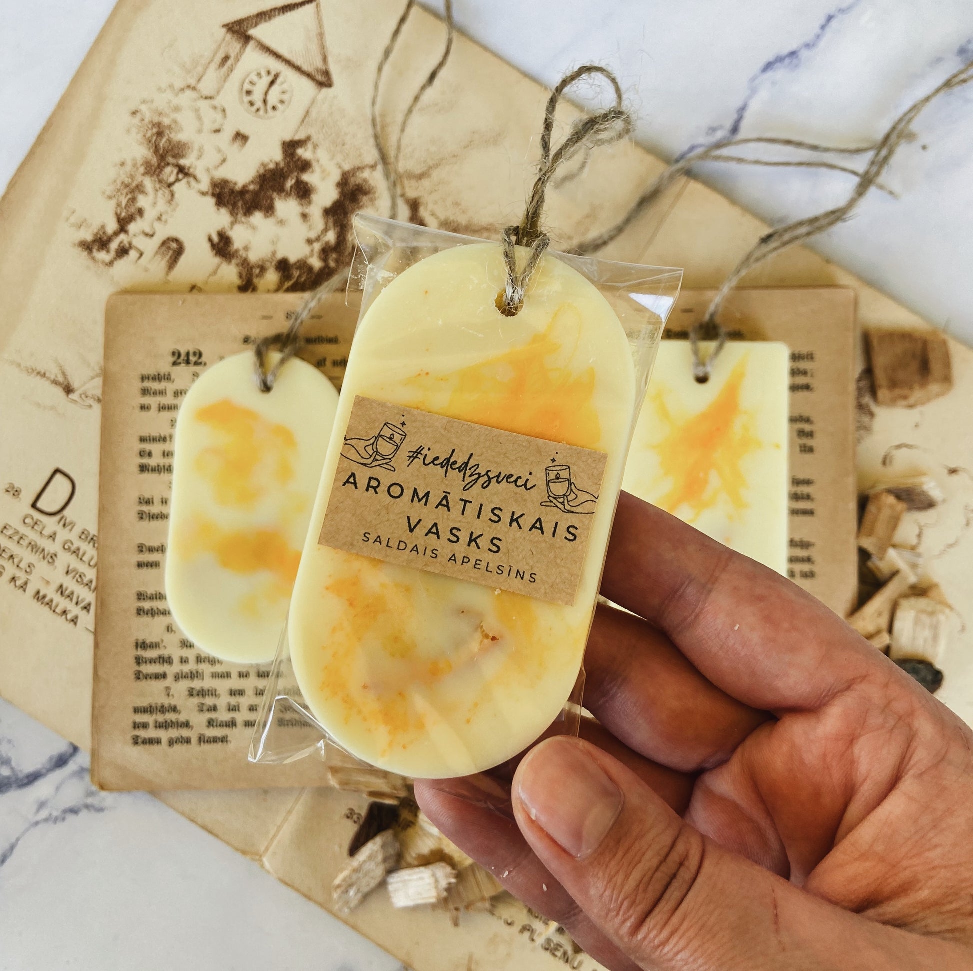The scented wax is intended for use in wardrobes and closets. In the winter, it can also be used in the car, as an air freshener, or placed on a work desk. A piece of scented wax can also be melted in an aroma lamp.