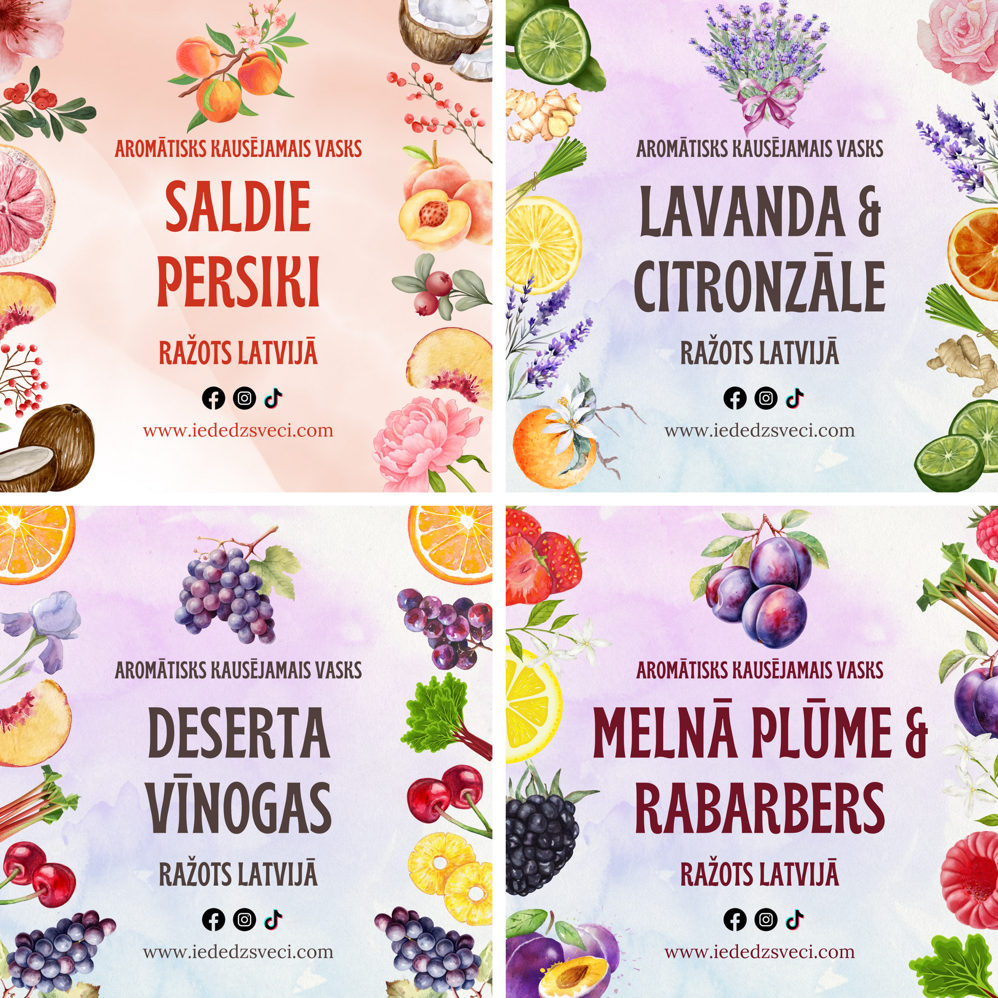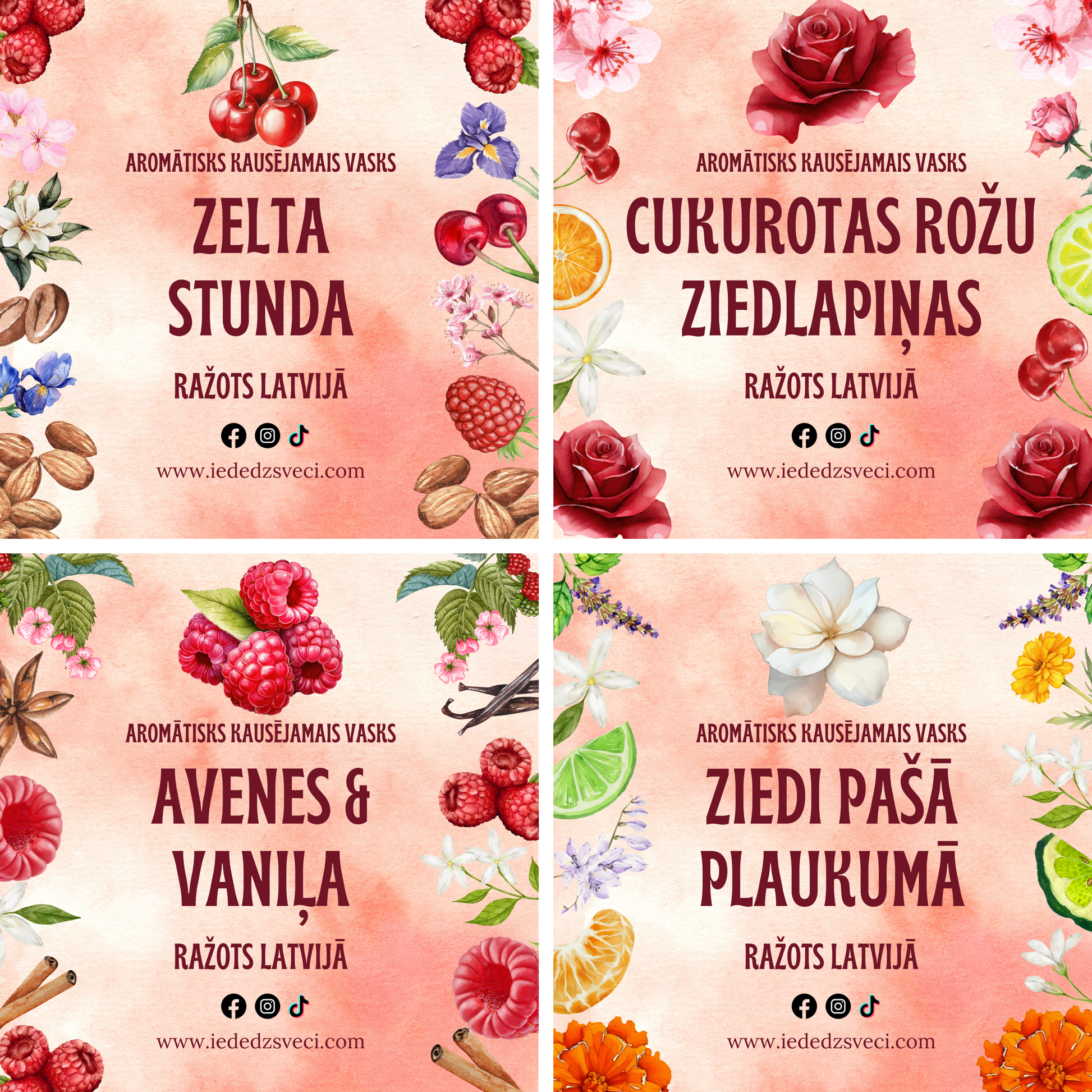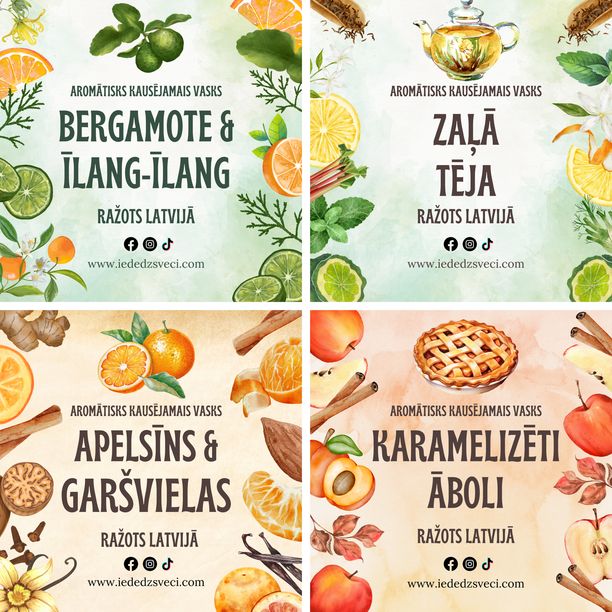 Scented waxes are made from natural soy wax and aromatic oils. The aromatic oils do not contain carcinogenic substances, are suitable for vegans, and are not tested on animals.