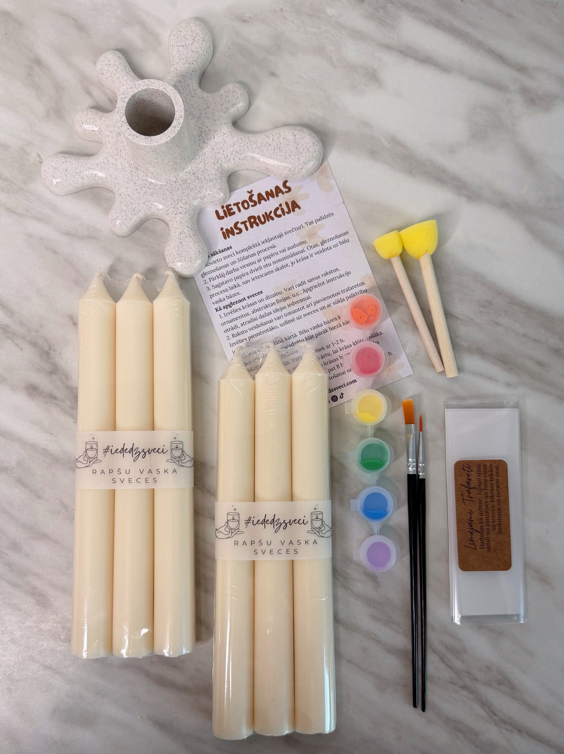 Izveido savas unikālās, ar rokām apgleznotās sveces ar šo DIY sveču apgleznošanas komplektu! Izbaudi mierpilnu brīdi, ļaujot vaļu radošumam, un radi unikālas sveces, kas piešķirs mājoklim īpaši mājīgu noskaņu. Lieliska dāvana sev vai kādam mīļam cilvēkam.
