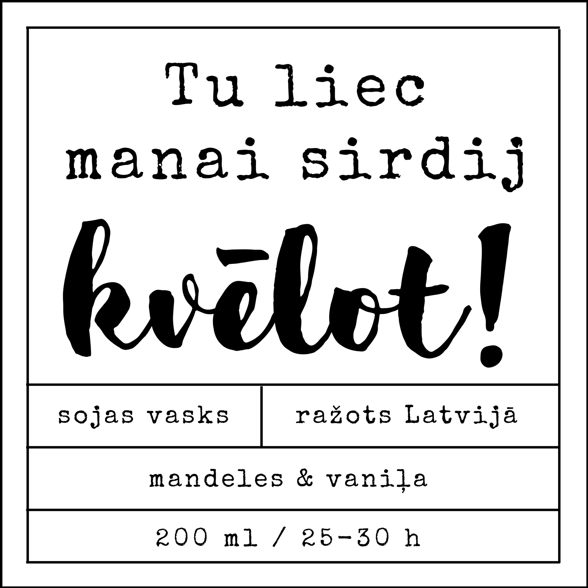Ingredients – 100% natural soy wax, aromatic oils.