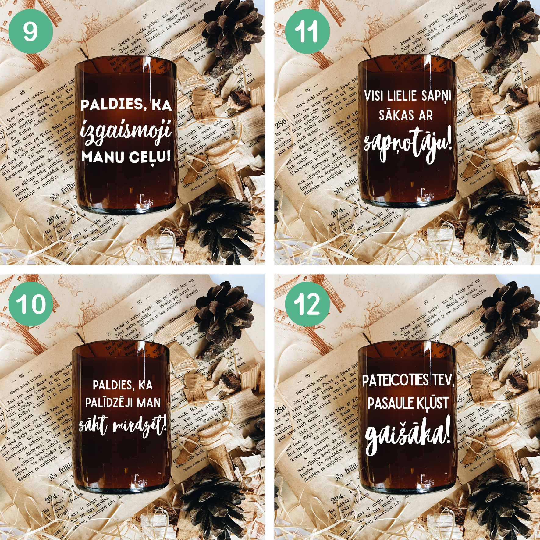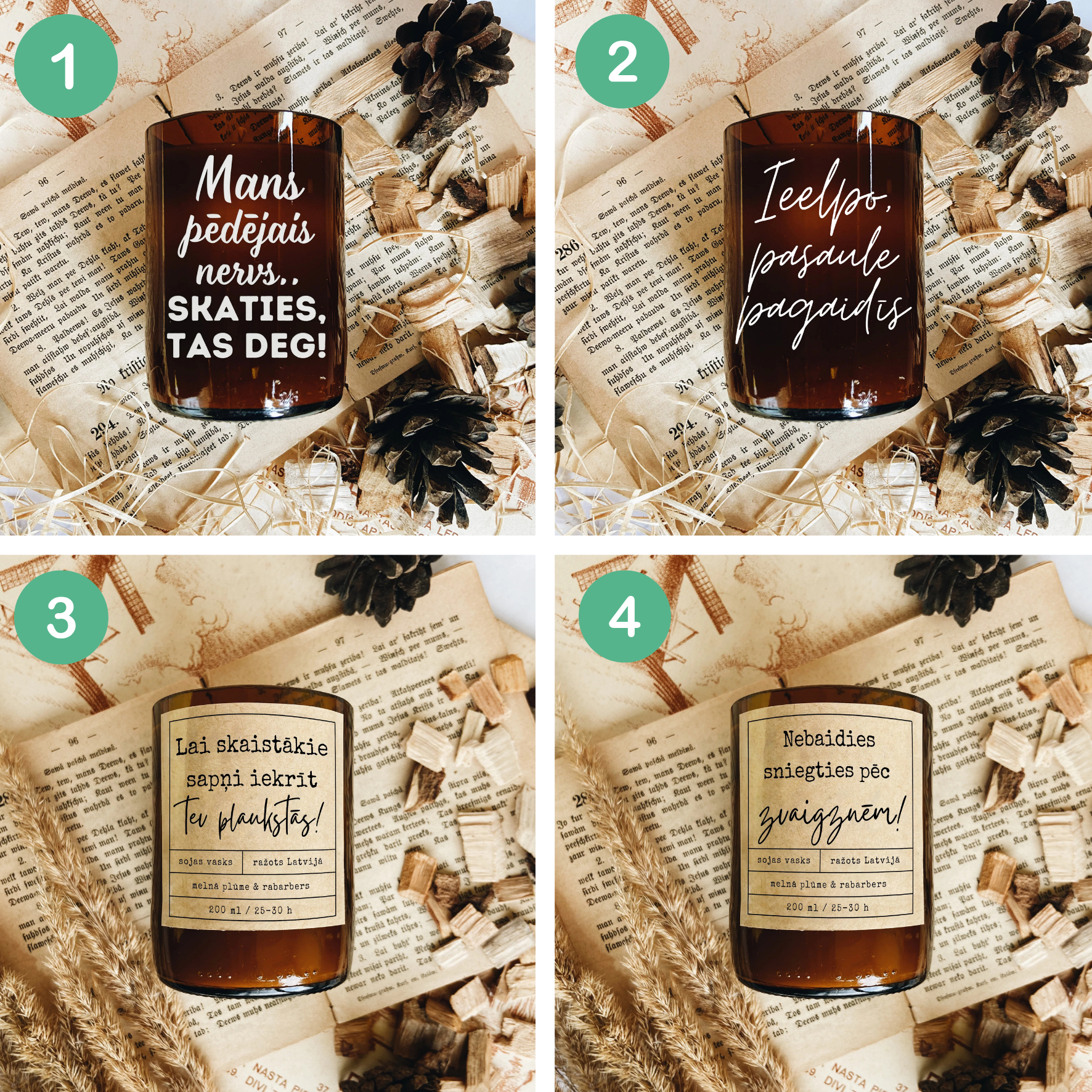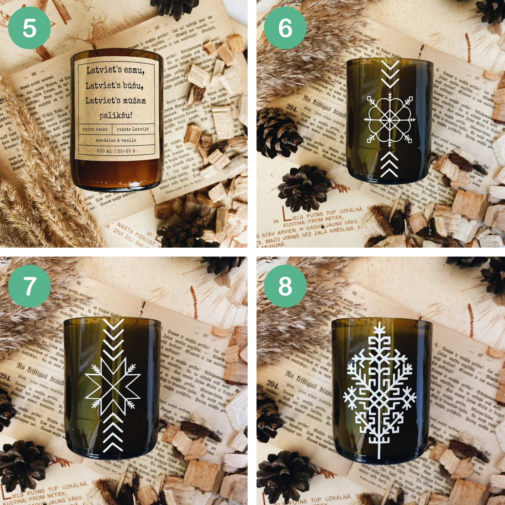 Var izvēlēties kādu no dizainiem, kas ir redzami foto un numurēti vai izvēlēties svecīti bez dizaina.